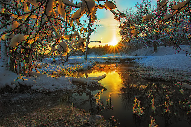 Вот закат развёл багрянец