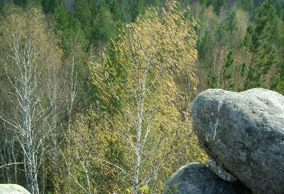 Там апрель на древке леса голого