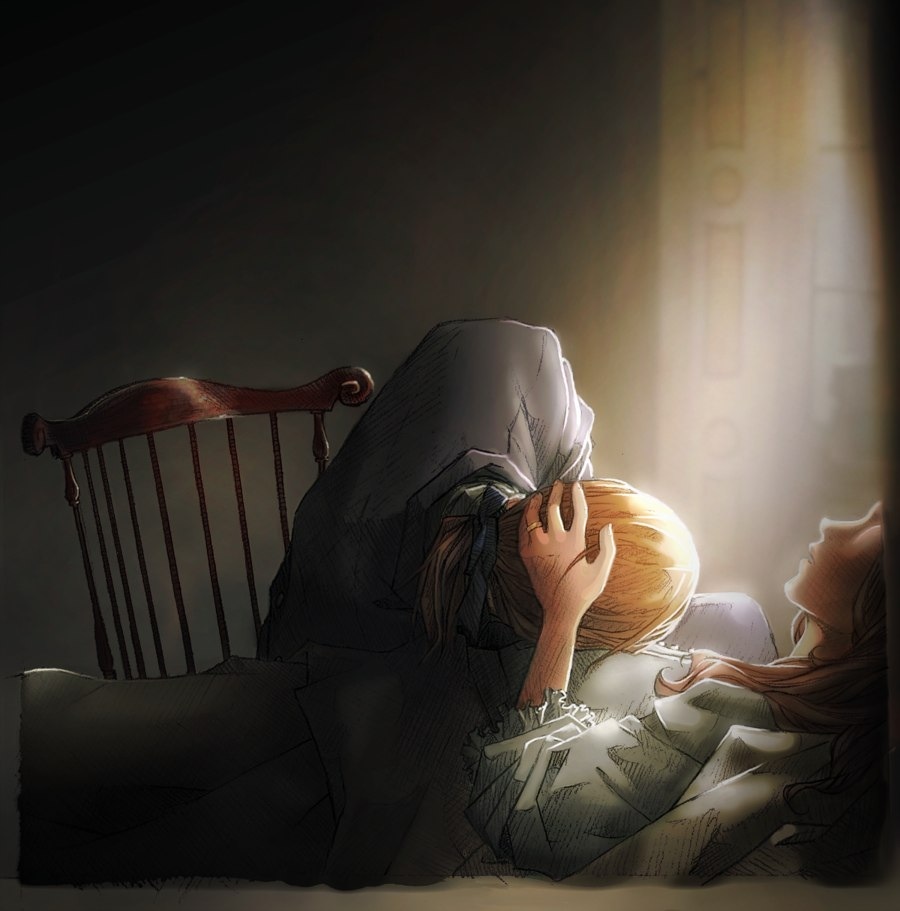 Мы лежим обнявшись в постели. Я тебя прижимаю к себе.