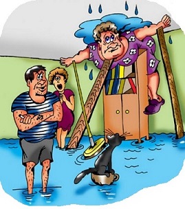 Тазики, тряпки с лужами...