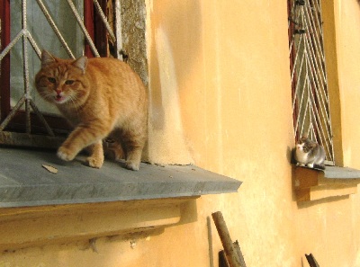 Разглядит подружку рыжий кот