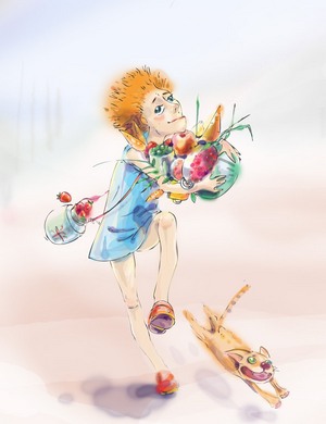 В корзинке несётся салат и второе,
