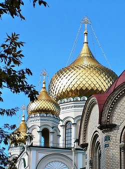 А на церквях сверкают купола,