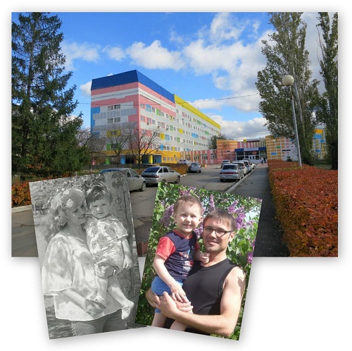 - я со старшим сыном Денисом (ему 1,5 годика) летом 1981 г.(слева), к слову, мои дети тоже родились в этом роддоме, младший Дима через 13 лет после своего старшего брата, 1 августа 1992 г.;