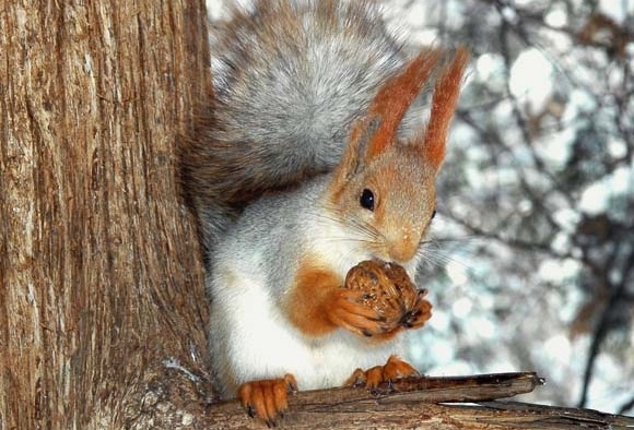 Белки спрятались в дупле.