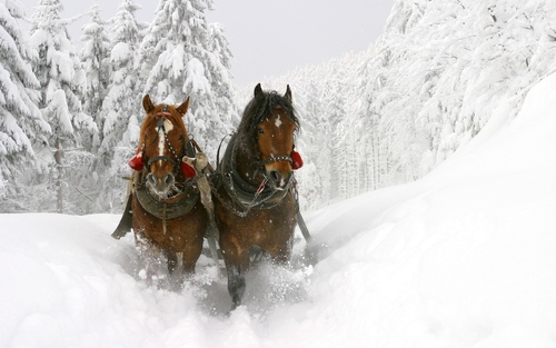 Две лошади и сани.