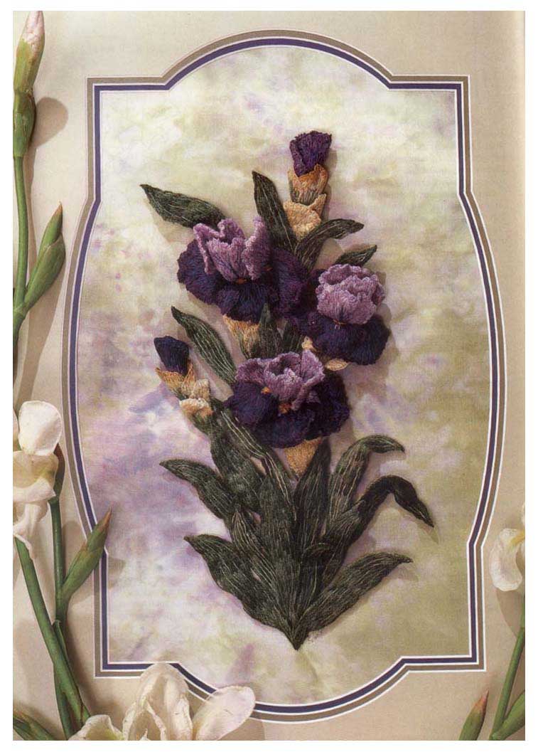 На пяльцах ирисы цветут.