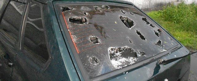 Град обрушил крыши в нём.
