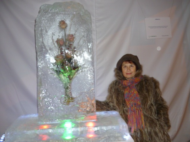 ФОТО: продрогший автор с розами, замёрзшими во льду