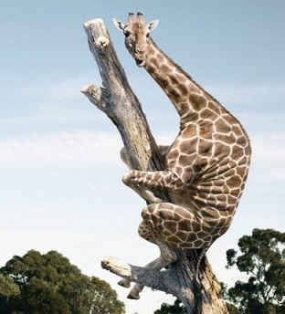 На голом стволе примостился жираф,