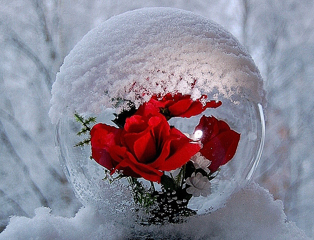 Снег на стекле... под куполом розы...