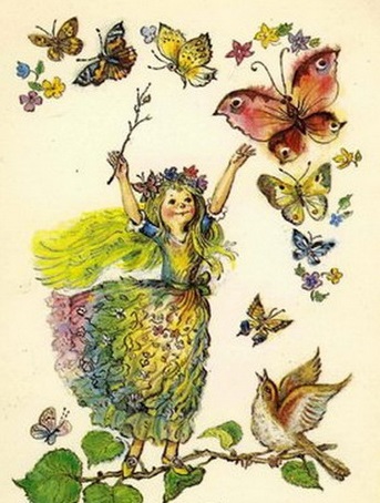 Весело порхает.