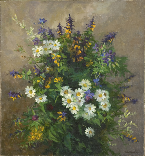 Его экспозиция называлась " Однозвучно звенит колокольчик" и была посвящена излюбленной теме- цветам.В роскошном старинном особняке рядом с венской оперой расцветали " Колокольчики"," Золотые шары"," Полевые цветы".Увидели венцы и нашу сибирскую зиму ( " Мороз и солнце") и густой туман ("Туман")," услышали" песенку ручья( "Родник").Конечно, для жителей Вены подобные картины были чем- то вроде экзотики.И тем не менее, выставка имела огромный успех.Может быть,потому, что его работы были пронизаны светом и теплом солнца и проникнуты искренней любовью к России и к своей малой родине.И музыкальностью.