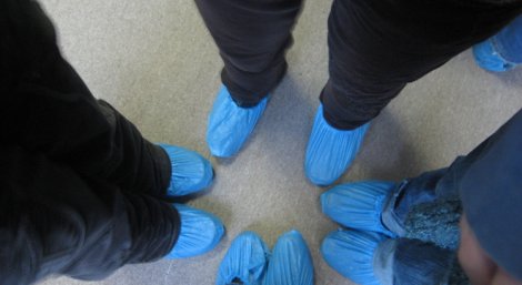 Там все в бахилах ходят, все снуют,спешат.
