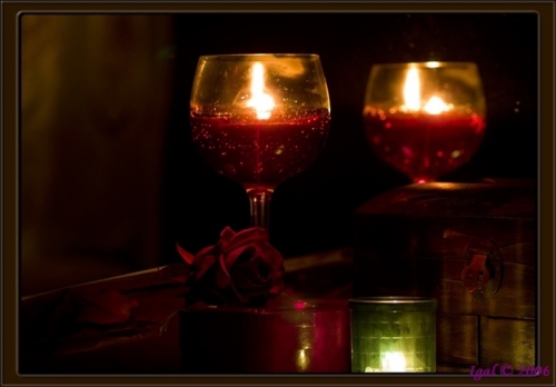 Вермут, свечи, два бокала,