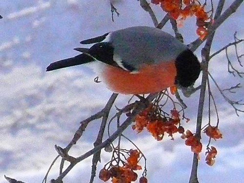 Уселись снегири из северных широт,