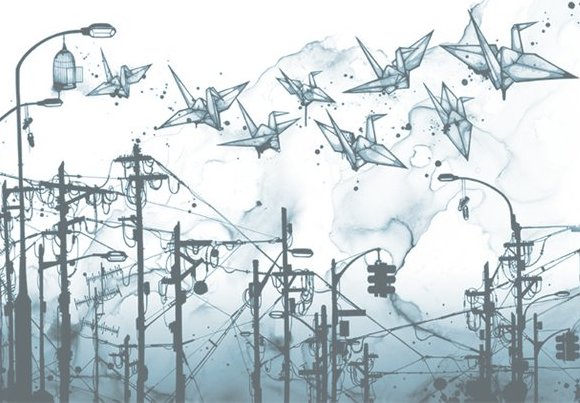 Белые бумажные журавлики маленькой японской девочки