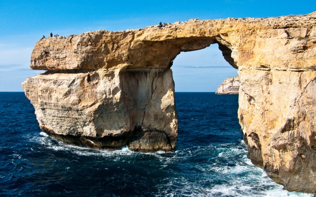 *На западном побережье острова Гозо находится Лазурное окно ("окно в Европу") — один из символов Мальты. Это две вздымающиеся из воды каменные колонны, достигающие 40 м в диаметре, накрытые сверху куском скалы длиной около 100 м. (прим. автора)