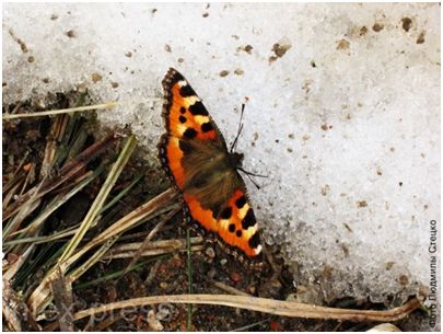 Над грязным снегом бабочки порхают,