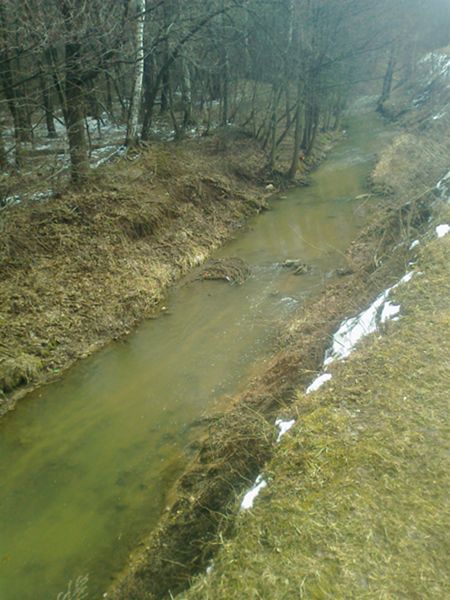 Вода в речушке зеленеет,