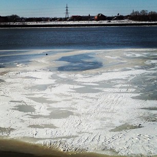 Илл. Лёд, плывущий по реке.