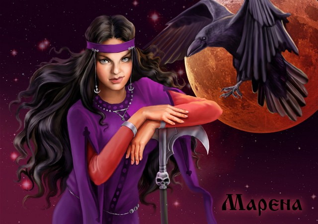 * Марена (польск. Marzana, Smiertka, словацк. Morena, Marmuriena, чеш. Morana, Smrtka, укр. Марена) — в западно- и восточно-славянской традиции женский мифологический персонаж, связанный с сезонными обрядами умирания и воскресания природы. (http://ru.wikipedia.org/wiki)