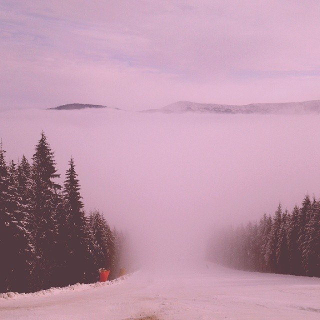 пробил густой покров сиреневый туман,