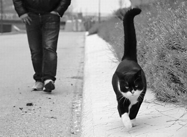 Смотрю, а кот за ним опять по следу …