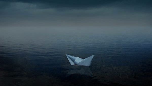 Несет кораблик из тетрадного листа