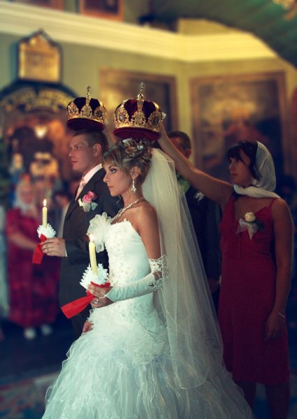 Молодые стоят у иконы,
