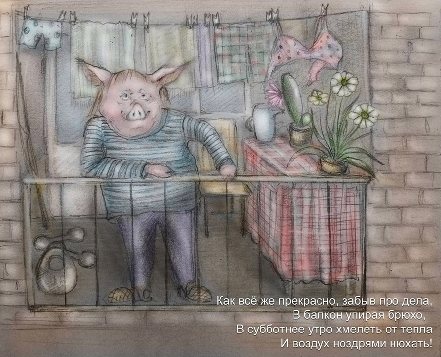 В балкон упирая брюхо,