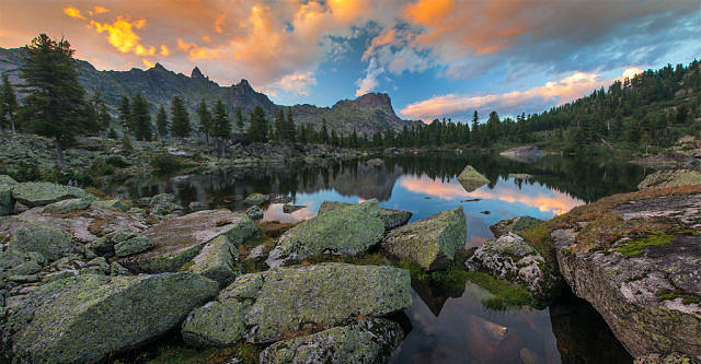 Озеро меж гор расположилось!