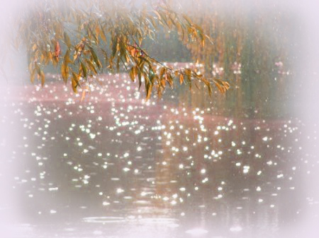 Рассеивает дождь аквамарином.