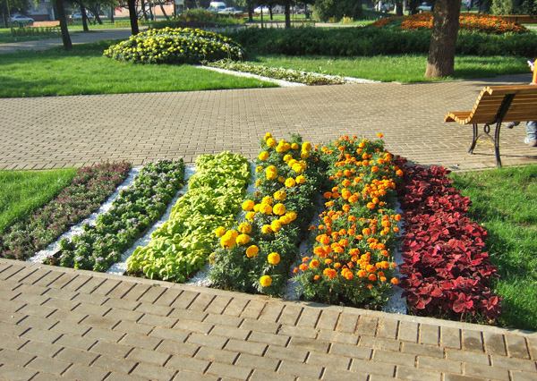 Цветы благоухают по вазонам,