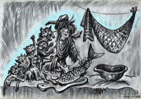 Делила баба рыбу. Художник Эдуард Кучер.