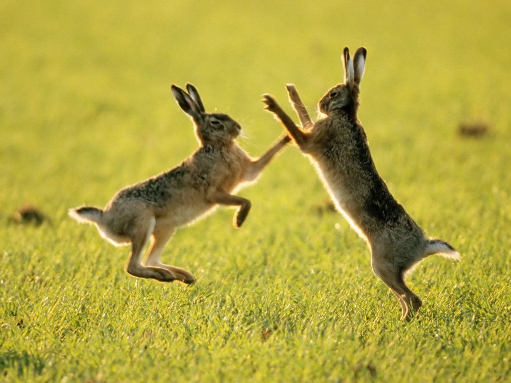 Когда два зайца, становились на дыба.