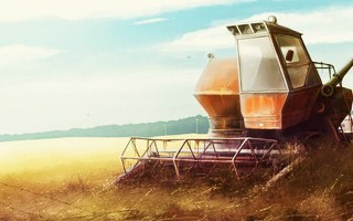 В полях комбайны убирали,