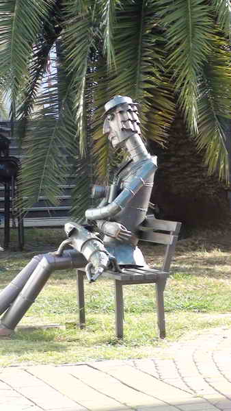На снимке фигура фотографа из металлических труб. Сочи 2014 г.