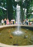 Сегодня гуляла в Петергофе. Рядом с самым красивым каскадом фонтанов Самсона есть маленький фонтанчик с детскими затеями. Фаворитный фонтан. По кругу фонтана как карусель кружили маленькие фонтанчики в виде уточек и собачка. Если на спинку уточки попадет монетка, то говорят что желание исполнится. и мне удалось попасть в самое хорошее местечко. Уточка,говорят, символ семейного очага.