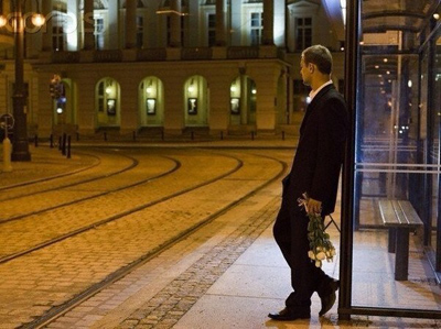 Пригрев остановку, как лист в ноябре,