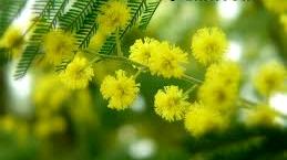 Фрукты, ветки мимоз -