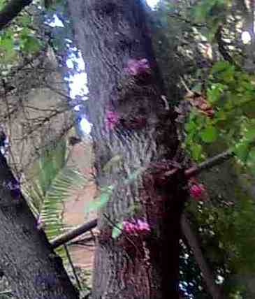 Странное дерево.Цветы его растут прямо на стволе.)