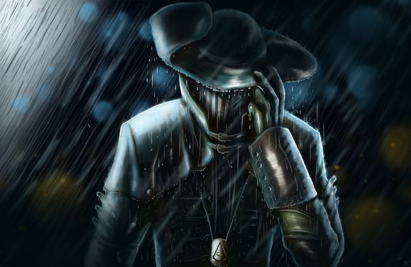 Лицо пока укрыто под плащом,