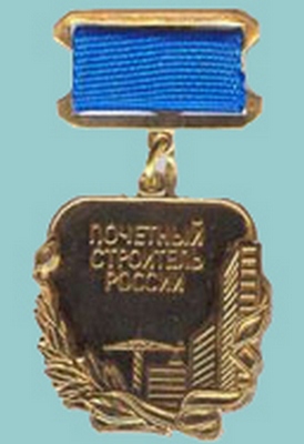 на фото - нагрудный знак "Почётный строитель"
