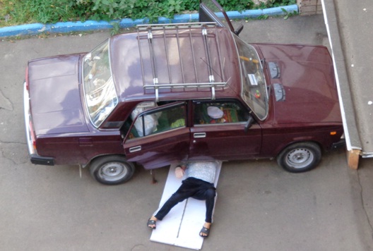 Лежит мужик, а сверху «Жигули».
