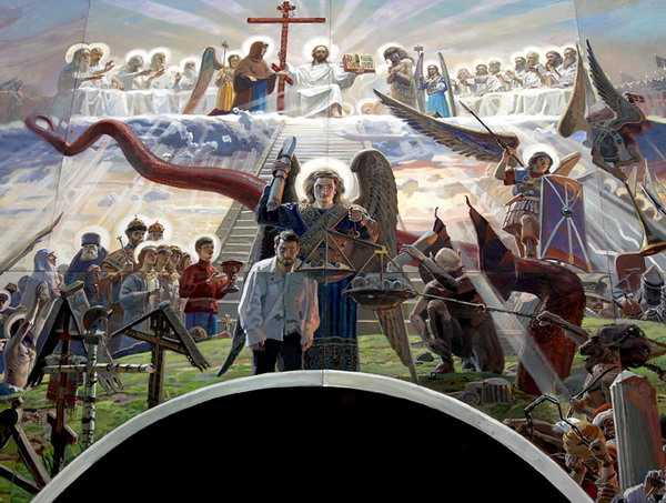 Иллюстрация росписи храма "Страшный Суд" из сети Интернет.На ней он изобразил себя.