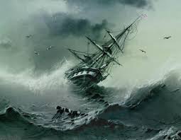 Штормит, кидает в стороны, не видно суши.