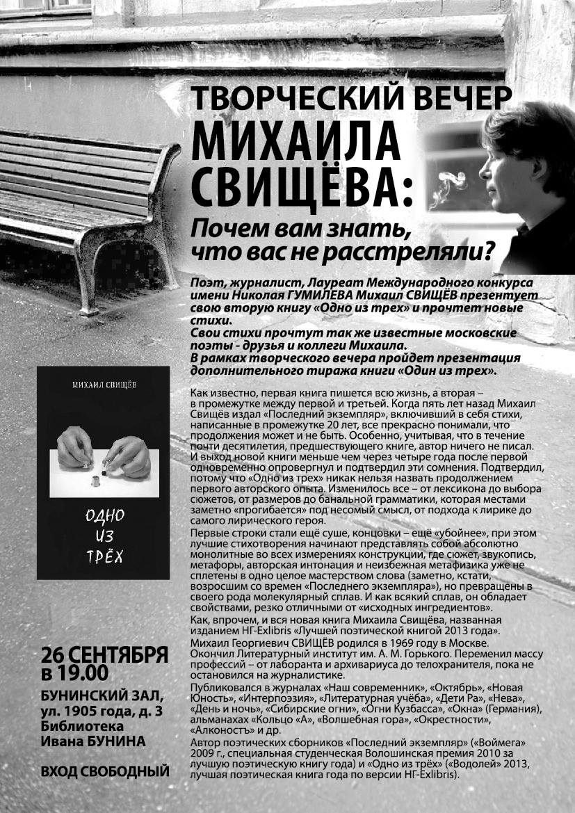 Друзья, в эту пятницу 26 сентября я буду читать в Бунинской библиотеке (что на м. 1905 года) и очень жду вас!