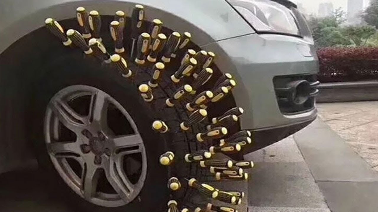 вдруг, колесо ему проколют.