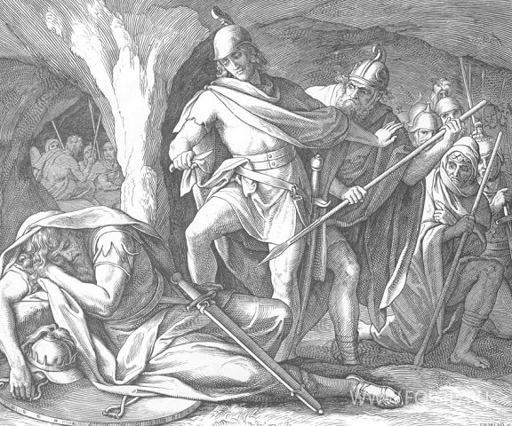 Иллюстрация: Давид предотвращает убийство своего соперника - царя Саула.